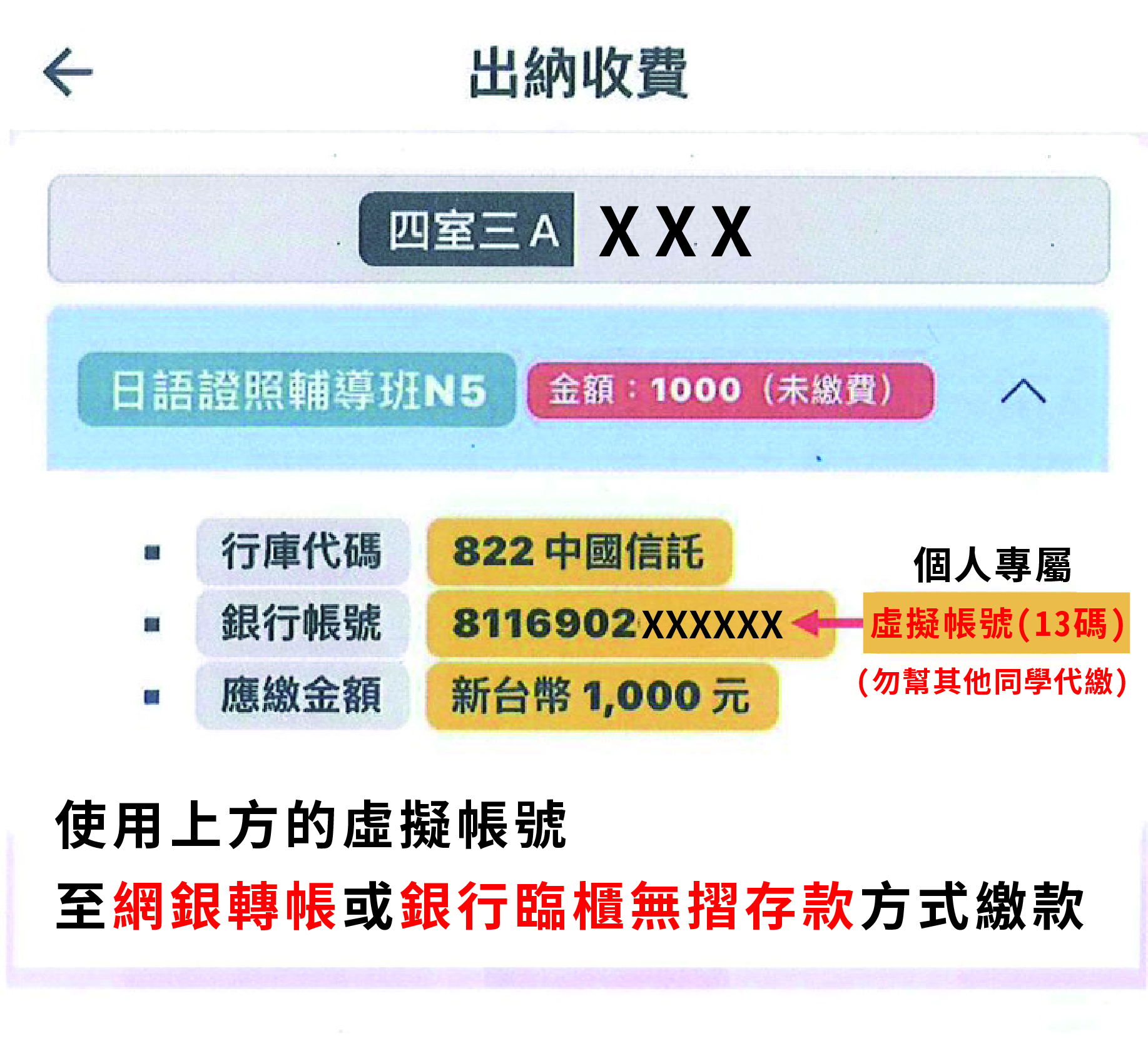 ◆繳費方式:報名完成後,人數達開課門檻將透過繳費系統通知學生進行繳費,請同學們於114年9月15日(一)起至9月21日(日)繳費期間於南應大入口APP繳費系統完成