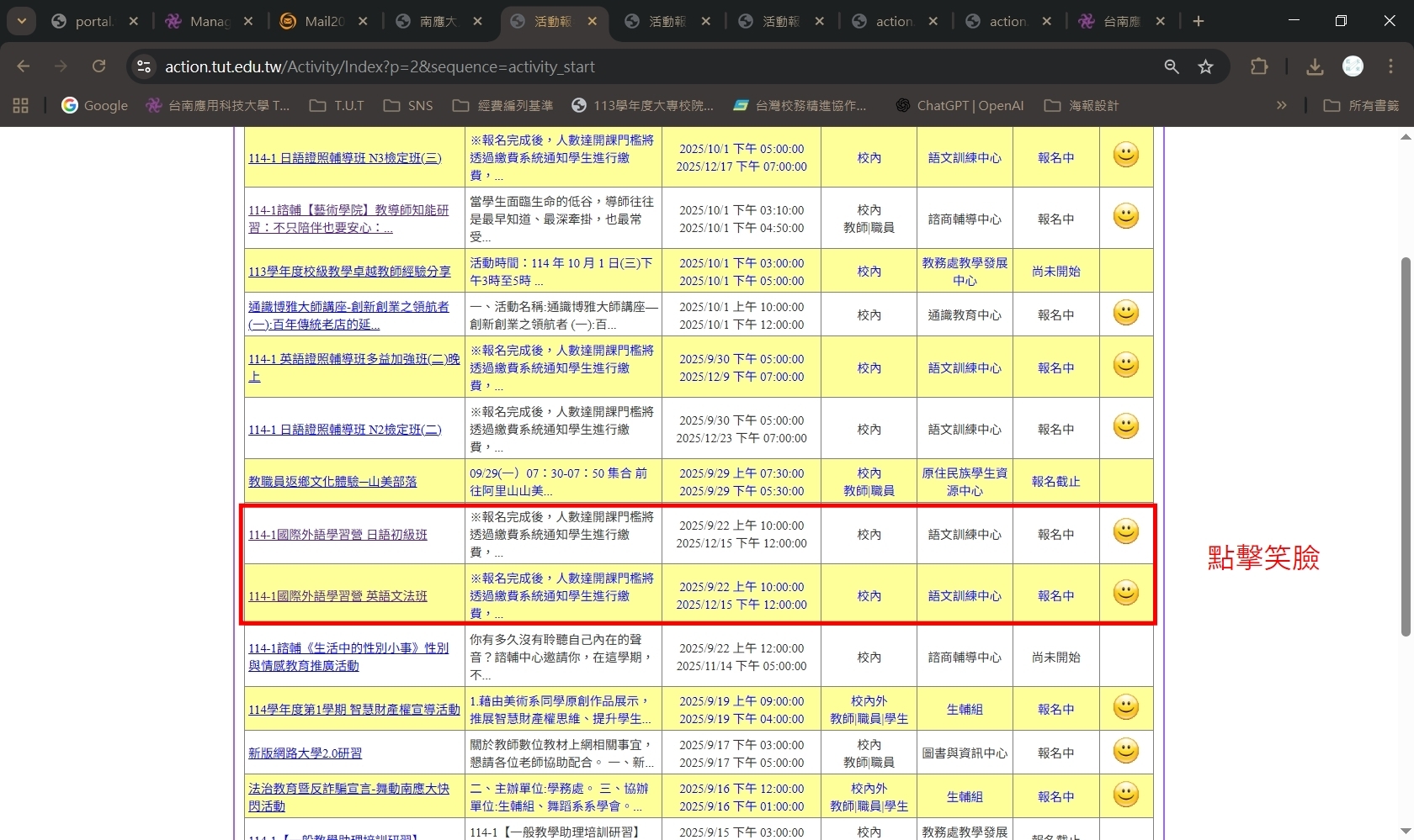 4.活動非常多...請拉到第二頁,在大約中間的位置就會找到課程名稱>並點擊笑臉