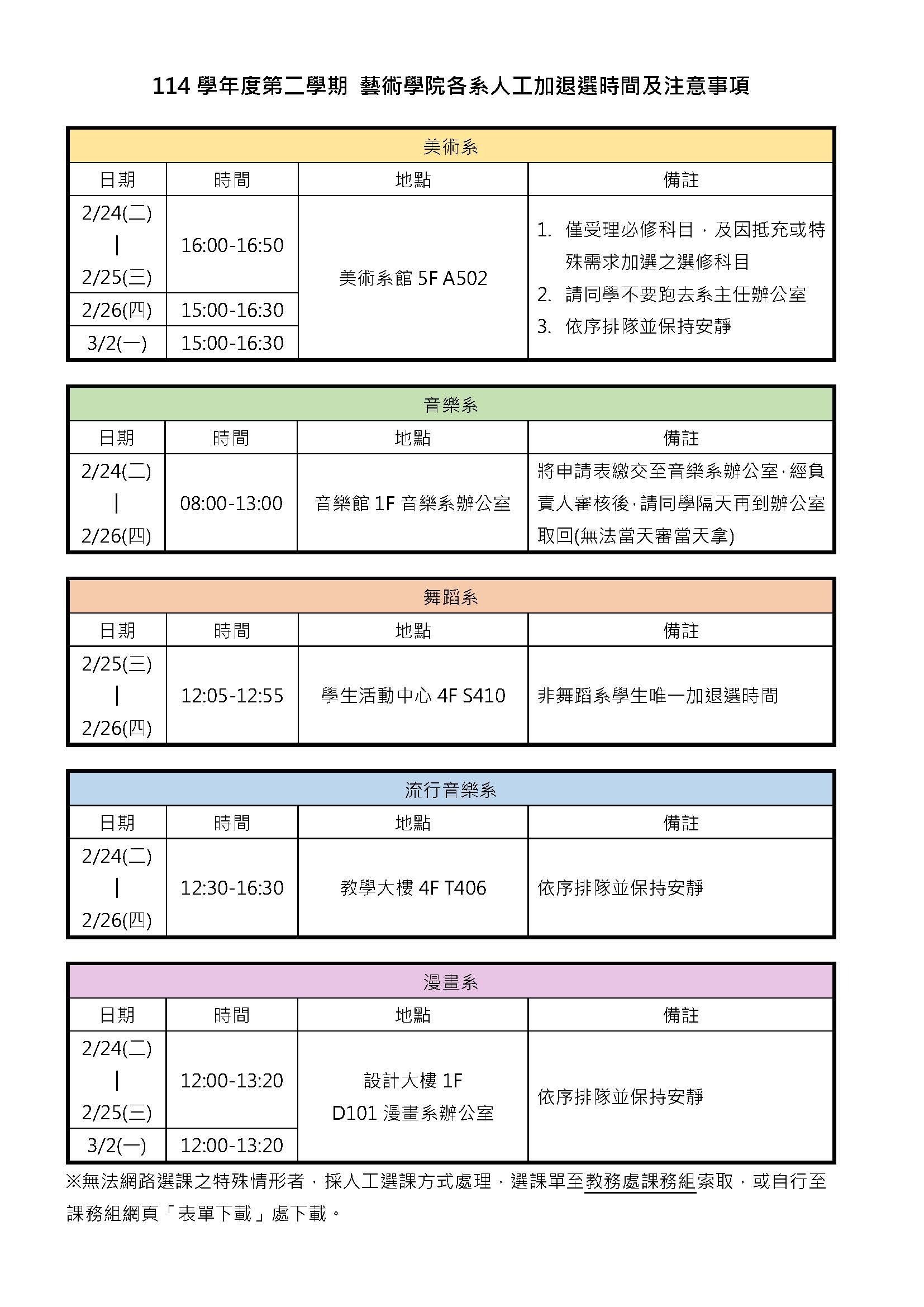 「全能藝術家學分學程」114學年度第二學期開放"外系學生"人工加退選時間