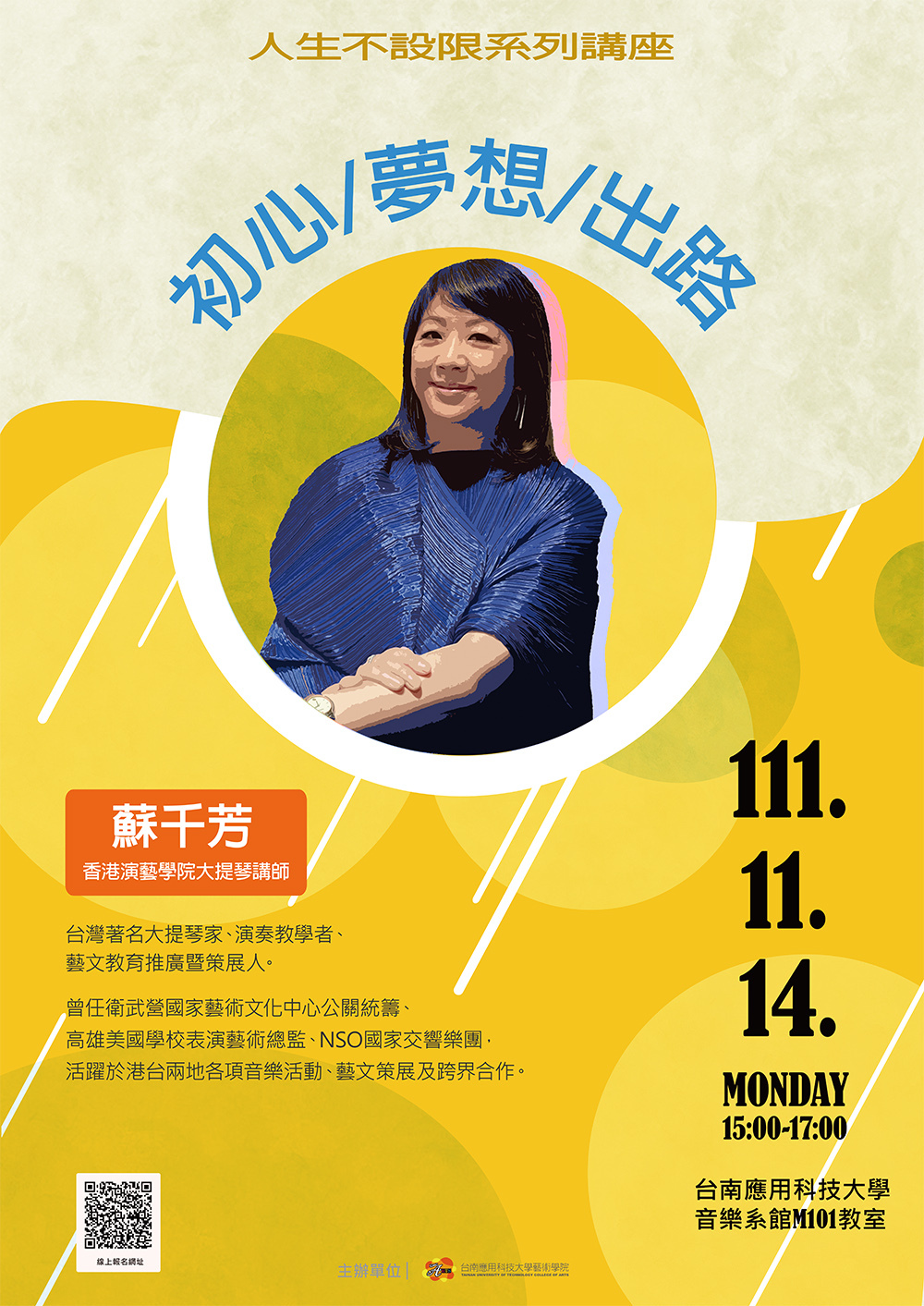 希望透过本次讲座,能让同学们了解学艺术不是只有演出跟教育而已,在艺海的世界里,你选择的艺术其实有非常多的可能性等着你发挥。
